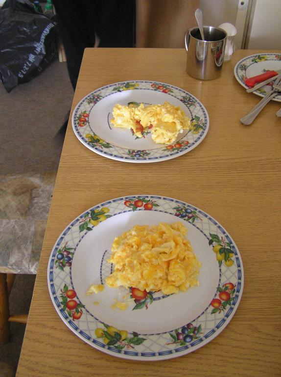 Jajecznica na tostach. Ogromna różnorodność płatków śniadaniowych, mleko ciepłe, zimne. Uczta, a nie śniadanie. Co nas powaliło na kolana? W każdym pokoju znajdował się komplet szlafroków, w których można było spokojnie zejść na śniadanie. Atmosfera panowała iście rodzinna. Nie chciało się ruszać w dalszą drogę.