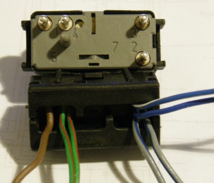 Komentarz: Oryginalna przełącznik: 1. Brązowy, 2. podwójny Szary, 3. podwójny Niebieski, 4. podwójny Zielony