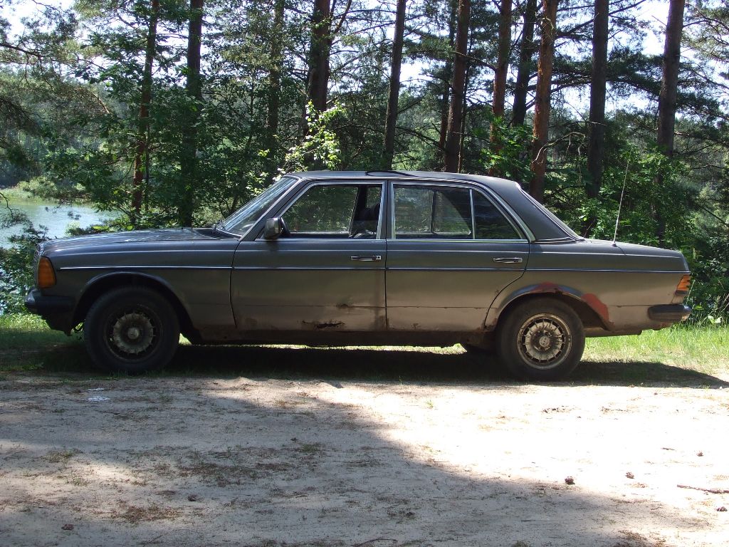 Witam, nawet nie wiem od czego zacząć... Ciężkie zadanie postawiłem przed sobą. Podyktowane było ono ogromną chęcią posiadania własnej beczki do jazdy na codzień. Bardziej zorientowani w temacie wiedzą, że pokazywana już na forum pomarańczowa 300D była dzielona wspólnie z moim ojcem. O ile byłem w domu miałem to auto do dyspozycji w każdym momencie. Wystarczyło mi to. Niestety odkąd zacząłem studia w domu bywałem (i nadal bywam) rzadko. Aby nie stracić na mobilności kupiłem sobie tanie wozidło, czyli Clio I z '94r. Właśnie remont pomarańczowej 300D i praca zarobkowa, oraz kupno Clio sprawiły, że w wakacje '09 zostałem bez pieniędzy i czasu na kontynuowanie prac przy w115. Obiecałem sobie, że w wakacje 2010 to nadrobię, bo nie będzie już takich przeszkód. Nawet w ferie zimowe trochę grosza zarobiłem, żeby w czerwcu móc od razu zacząć. No cóż... nie udało się. Nie mogłem pogodzić się z faktem, że nie mam beczki pod ręką, że jeżdżę plastikiem, który bądź co bądź był bez wad. No może nie był tak wygodny jak w123. Nie przyszłoby mi jednak do głowy pomysł, żeby go sprzedać i kupić beczkę. Nie zrobiłbym tego, ale zostałem delikatnie podpuszczony przez forumowego kolegę i potem sam zacząłem się nakręcać coraz bardziej i bardziej. Mimo, że środki miałem mizerne i takie same szanse na znalezienie czegoś za tą cenę, to udało się. W tym miejscu chciałbym bardzo podziękować forumowemu koledze