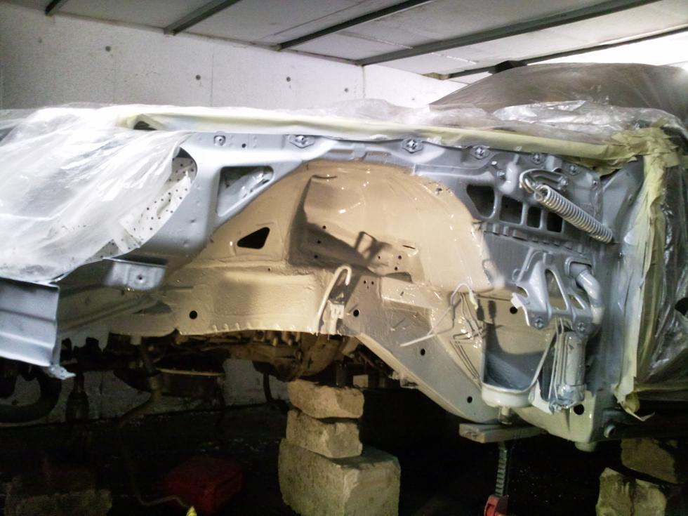 Dzis udało mi się zakonserwować boczne fartuchy (wytrawiacz rdzy, epoksyd, srodek do konserwacji podwozi z włoknem szklanym), przy okazji łatwego dostepu, wymontowałem pompe wspomagania, by powymieniać w niej uszczelniacze i gume pompy, wymieniłem regulator napiecia w alternatorze, załozyłem nową uszczelke małej miski olejowej, oraz wymieniłem czujnik cisnienia oleju, pozatym umyłem cały dół silnika, bede musiał jeszcze wymienic simeringi na wałkach w kopułkach zapłonowych bo troche z nich cieknie, zastanawiam sie jeszcze nad wymiana łańcucha rozrzadu, ale to raczej robota dla mechanika, ja się sam tego nie podejme.