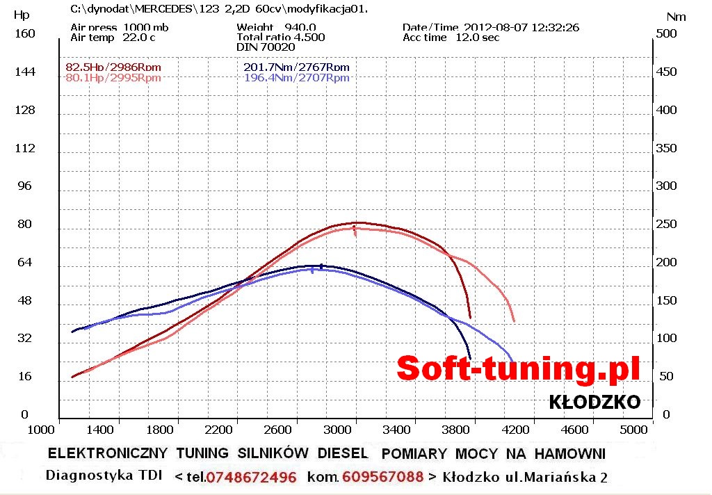 Merc trafił na hamownie z byłą GT 22 i wypluł 82.5 Km oraz 201.7 Nm przy doładowaniu 0.9 bara :)