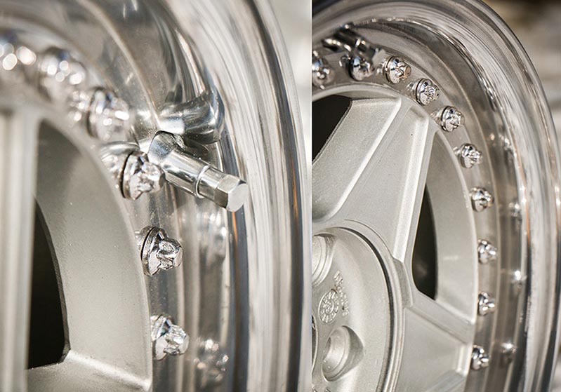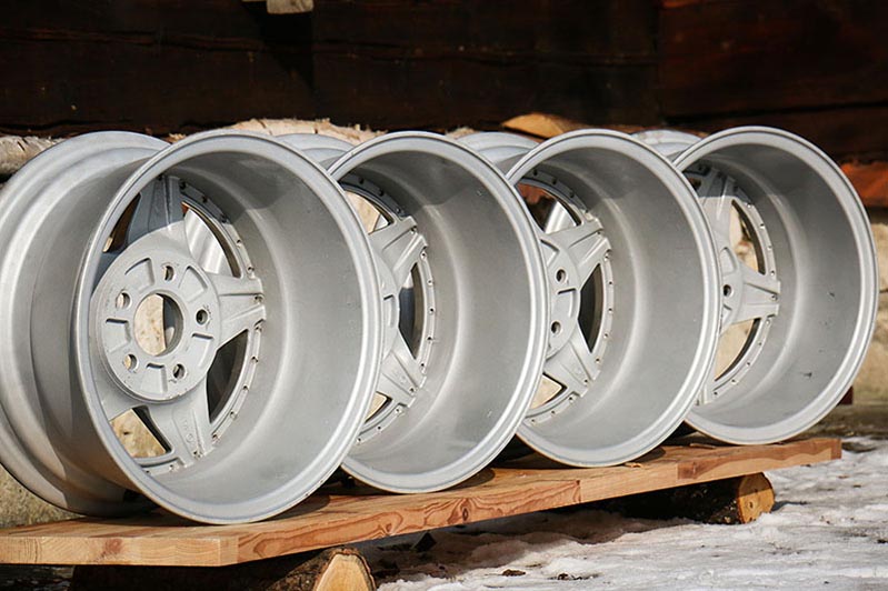 Felgi nie były piaskowane, proces ten znacznie uszkadza aluminium. Przed malowaniem stara powłoka lakiernicza została usunięta chemicznie, przez zanurzenie w kwasie.