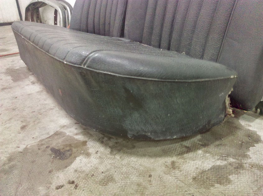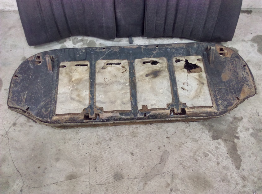 Sprzedam tylną kanapę do Mercedesa W114 W115 w stanie dobrym kolor granatowy małe dziury na oparciu.