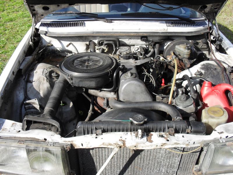 Oto dawca z Bolesławca. Rocznik chyba '83, "prawie" kompletne auto - brakuje automatycznej skrzyni i dokumentów więc ew. odbiór tylko lawetą. Kupiłem to jakiś rok temu, myślałem, że się przyda ale jednak nie. Silnik dobry, odpalił na mrozie po jednym grzaniu z nienowego już aku 100Ah, i chodził trochę. Problem jest, że ciekną przewody wys. ciśnienia, zwłaszcza pierwszy wtrysk i sączy się olej z węża chłodnicy - spotkał się kiedyś z kołem pasowym. Miał Nivo, ma centralny zam. który ostatnio działał i el. lusterko - działało jak kupiłem, teraz przestało. Drzwi dołem wzięte, do uratowania być może, wnętrze do bani, może poza boczkami, wydech szajs, blacha raczej nie robiona poza podłogą przed pasażerem/pod aku, na podłużnicy w komorze ślad jakieś kolizji sprzed lat. Coś tam jeszcze do niego jest, jakieś plastiki z wnętrza, itp. co nie widać. Bez ceny wyleci do kosza więc przyznam się szczerze, że dałem za niego 2 tyś. i marzyłbym aby to odzyskać [hihi] ale wszystko jest do dogadania. Stoi na ziemiach odzyskanych, a dokładnie jakieś 15 km od Jeleniej, a 150 od Wrocławia ;)