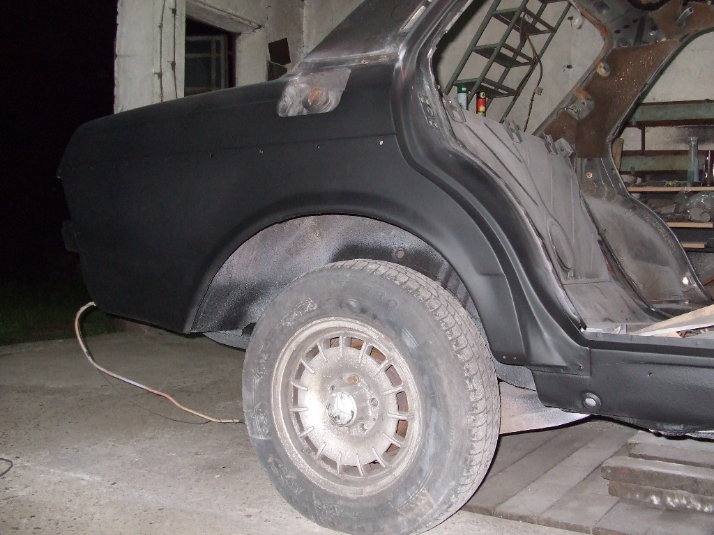 Do dyspozycji mam giętarkę, szlifierkę kontową, imadło, kowadło, kochany migomat i parę narzędzi blacharskich (młotek, kowadełka, łychy). Nie jest to imponujący asortyment, dlatego większość dorabianych elementów, to poprostu rzeźby, które kształtuję poprzez odpowiednie nacinanie, doginanie i spawanie (patrz np. podstawa chłodnicy, wewnętrzne łuki tylnych nadkoli). Jak zachodzi potrzeba, to robię coś takiego: