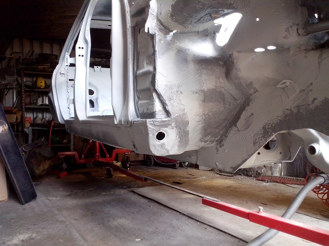 Samochód wyspawany (nawet tam gdzie na początku nie było dziur po piaskowaniu pokazały się.