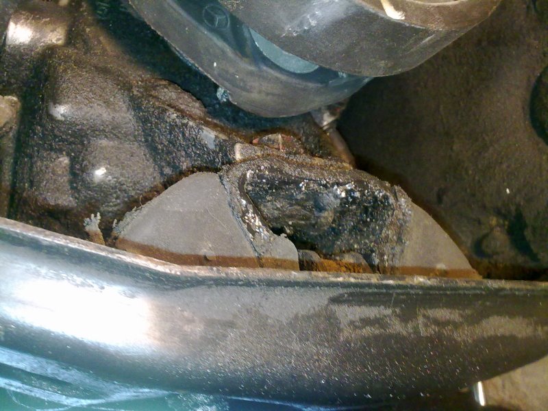 Poduszka skrzyni biegów. Z tyłu skrzyni cieknie olej, mając skrzynię wyjętą można było wymienić uszczelnienia... Ale po co informować klienta, żeby podjął decyzję... :evil: