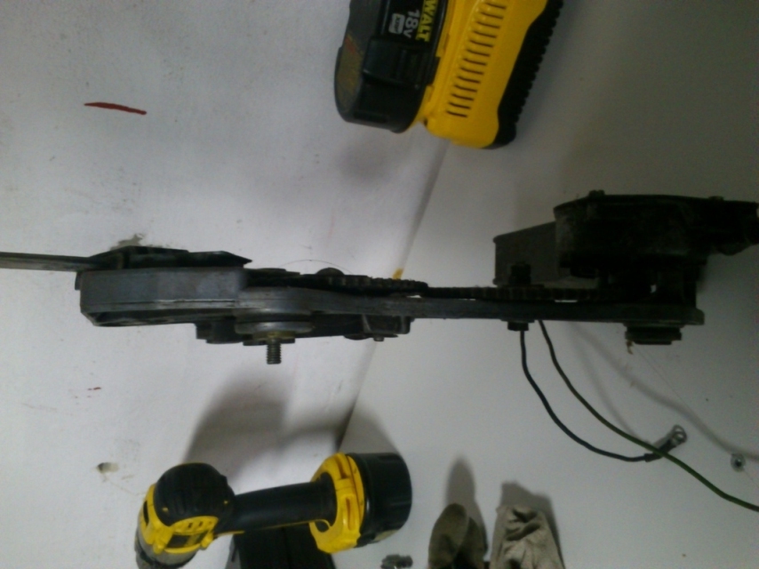 Pokrzywione podstawy na których jest cały mechanizm i silnik (na zdjęciu tak dokładnie może tego nie widać, ale zębatka silnika jest przekrzywiona o kilka stopni w stosunku do zębatki głównej)