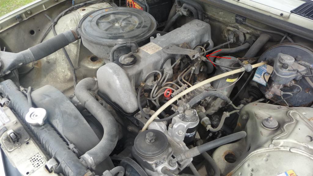 Problem objawia się tym, że paliwo nie wraca do baku, i pod ciśnieniem wypływa z miejsca zaznaczonego na zdjęciu. Tam przy ostatnim wtryskiwaczu wylewa przez wężyk ropę.