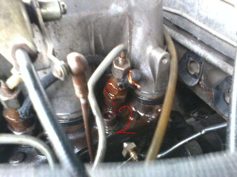 Do tego metalowego króćca masz dwa wejścia jedno to nadmiar z wtrysków a drugie z pompy wtryskowej i jeszcze nadmiar z pompy zasilającej czyli to paliwo które wychodzi bezpośrednio z filtra,więc czy tak czy tak będzie się lało z miejsca 1!