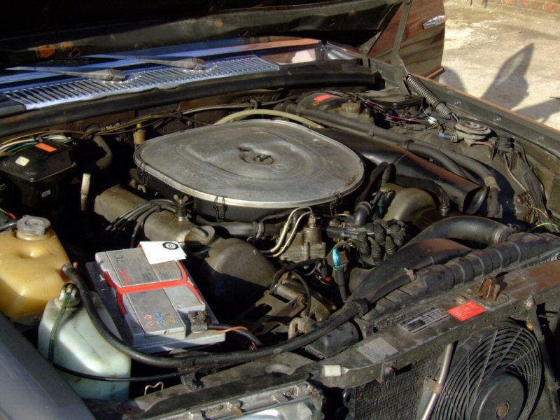 Właściwie, to ukończywszy demolowanie Pani Mercedes, stwierdzam że nie jest źle. Gdy już skończyłem demolować wnętrze i ogon, przyszła pora na obicie mordki. Zacząłem od nadkoli, odkręcając wszystko, co dało się tam odkręcić, tzn. półkę akumulatora, sterownik - zawór automatycznej klimy, wraz z pompką, cewkę zapłonową wraz z modułem zapłonu, oporniki, klaksony, które z lenistwa Niemiec przykręcił tam, gdzie miał łatwiejszy dostęp, skrzynkę bezpieczników... Później przyszła kolej na demontaż sprężarki klimy, pompy wspomagania, alternatora, wentylatora... Aby to zrobić, pozbawiłem Panią Mercedes oczu, wycieraczek reflektorów, chłodnic...