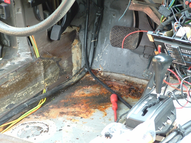 Hmm. Częsciowo masz rację. Tapicerka jest w tej chwili wyrzucona i czeka sobie spokojnie aż ją doprowadzę do porządku. Przy okazji rozbroiłem wnętrze do rosołu, tzn. wyciągnąłem deskę rozdzielczą, bez czego niemożliwym byłoby wyciągnięcie dmuchawy i nagrzewnicy. Poza tym wyciągnąłem wszystkie możliwe wygłuszenia, by przyjrzeć się dokładnie scianie grodziowej. Poza jedną dziurą i drobniejszymi ogniskami korozji, nie ma większych "niespodzianek". Przy okazji dowiedziałem się, skąd wzięła się kałuża na podłodze kierowcy. Niemiec w ostatnich kilku latach trochę pokpił sobie z utrzymywaniem kondycji Pani bulgot i gdy pojawiły się drobne ogniska korozji, zalepił je gumipastą, a że podszedł do sprawy "od serca", pociągnął owym specyfikiem również po odpływie z półki bezpieczników. Gdybym dokonał zakupu dwa lata później, mógłbym się nieźle zdziwić, gdybym spróbował zaciągnąć hamulec ręczny.