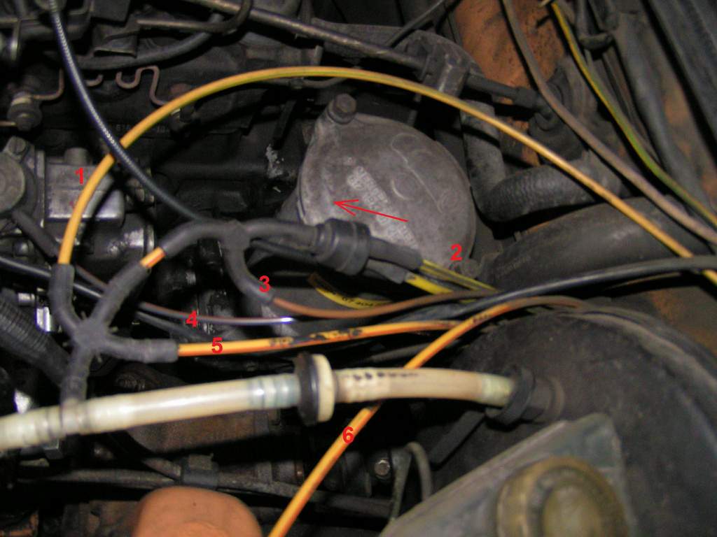 U mnie, ze zbiornika podciśnienia umieszczonego pod błotnikiem, wychodzi (albo wchodzi do niego?) rurka oznaczona na zdjęciu numerem