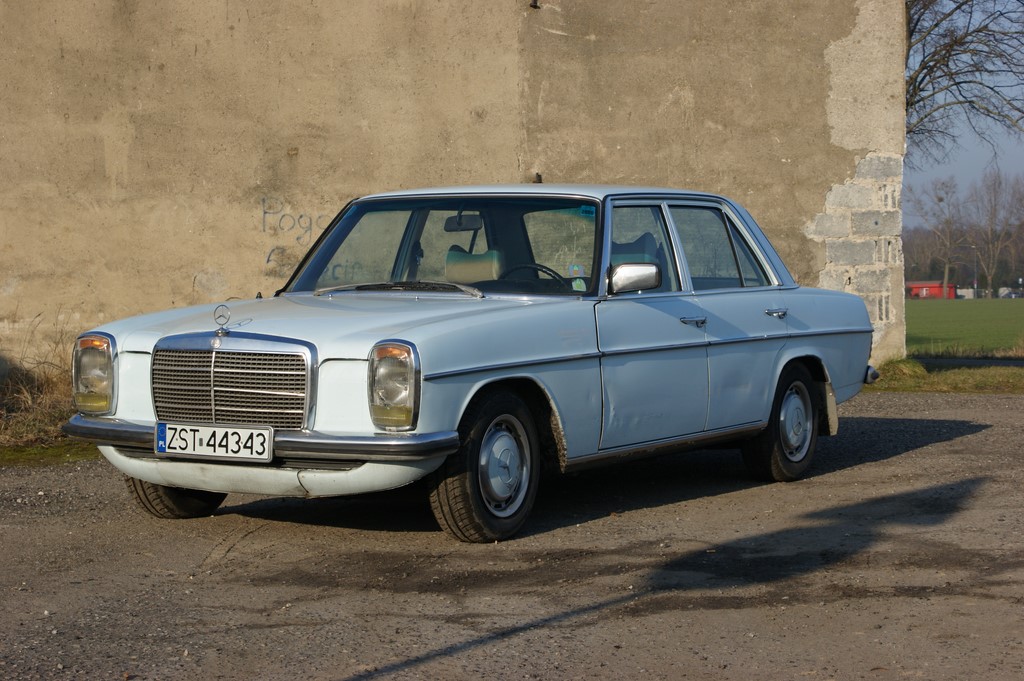 Cześć wszystkim, zarejestrowałem się stosunkowo niedawno, ale z przywitaniem pozwlekałem do momentu kiedy przytargałem do siebie Mercedesa. Po sprzedaży poprzedniego projektu jakim był Uaz 469, postanowiłęm spełnić dziecięce marzenie kiedy to swego czasu 3 bloki dalej stawała taka limuzyna i od tamtej pory mawiałem że kiedyś będę miał cakie cacko. Oglądałem wiele egzemplarzy z czego większość okazywała się być rdzawym strupem albo kosztowała ciut za dużo niż miałem w portfelu. Po wielu nieudanych trafieniach spotkałem się z w miare przyzwoitym egzemplarzem W115 sprowadzonym od podobno pierwszego właściciela z francji (po części to może być realna historyjka): zasadniczo nie zwieśniaczony czy przerabiany, z kompletem dokumentów oraz po prostu jeżdżący. I jeb, stało się wracam nim na kołach, z ryzykiem bo niby na lekkim nielegalu i z dozą niepewności stojącego kupe czasu auta, ale dotarłem bez większych problemów do domu, 800km dalej.